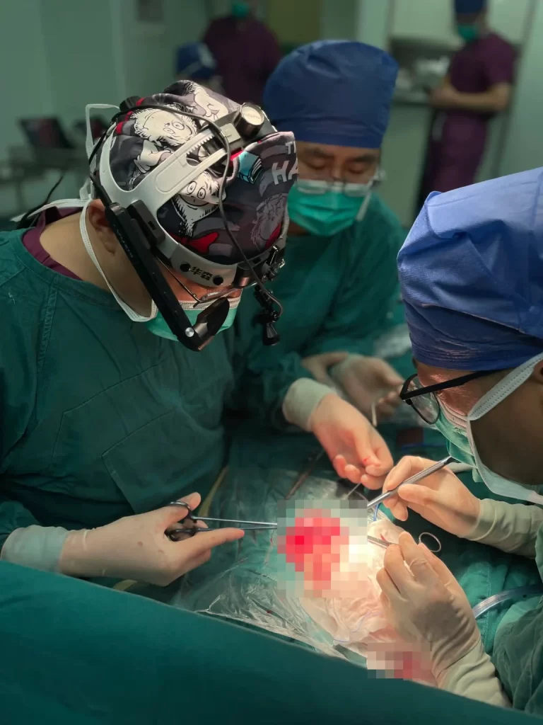 집도의가 ARbigtec M4000 스마트 AR 안경을 착용하여 시야를 가리지 않고 정상적인 수술 조작에 영향을 주지 않으면서eh 고화질 수술 라이브 방송을 완료하고, 완전한 녹화를 통해 소중한 1인칭 시점 자료를 형성했습니다.