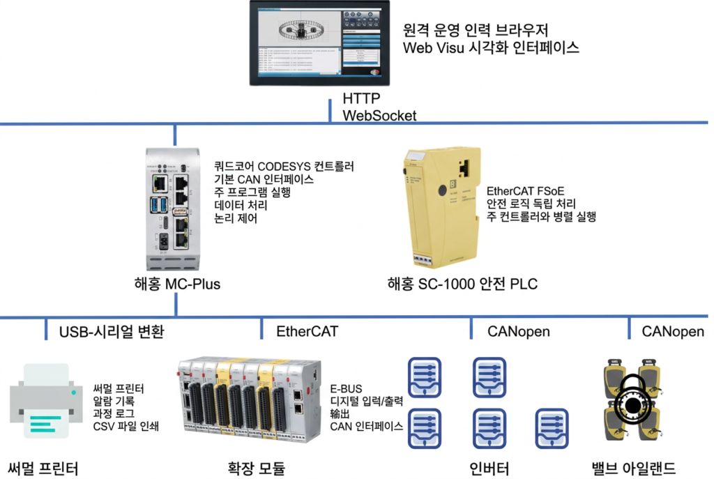 원격 모니터링 및 조작: 보안성과 응답 속도를 확보하면서도 웹 브라우저 기반의 원격 시각화(WebVisu) 기능을 지원해야 했습니다.