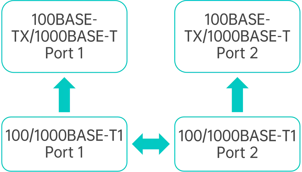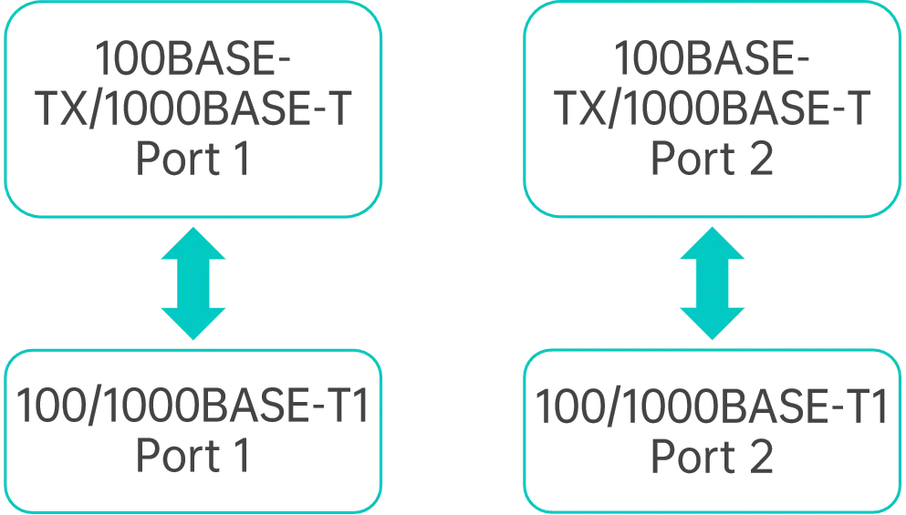 | 표준 이더넷 | 2x 100BASE-TX / 1000BASE-T(IEEE 802.3 Clause 40) | 2x 2.5 / 5 / 10GBASE-T(IEEE 802.3an / 802.3bz) | 2x 100BASE-TX(IEEE 802.3 Clause 24) |