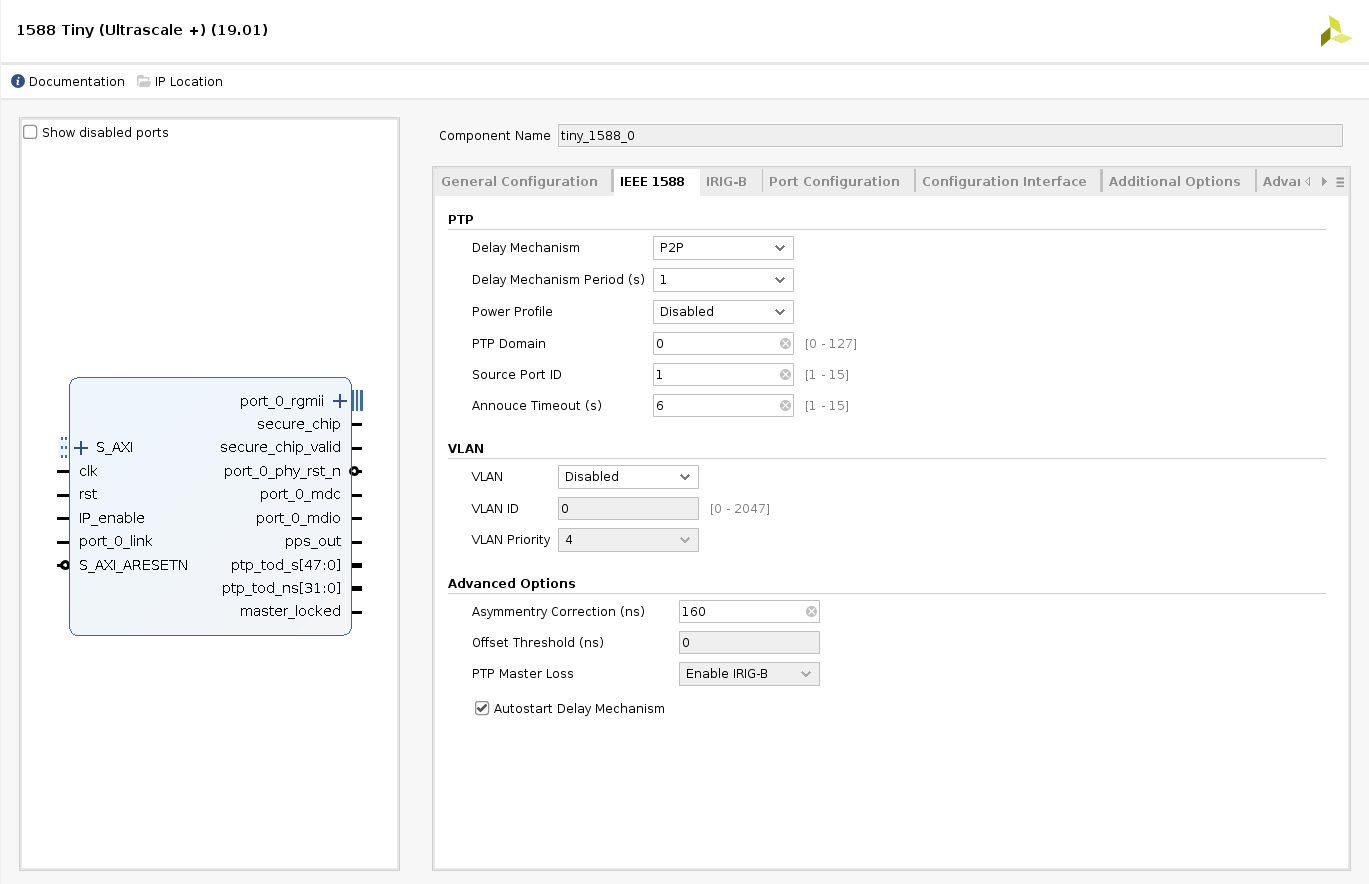 1588 Tiny Micro IP Core IEEE1588v2 CPU 슬레이브 클럭 없음