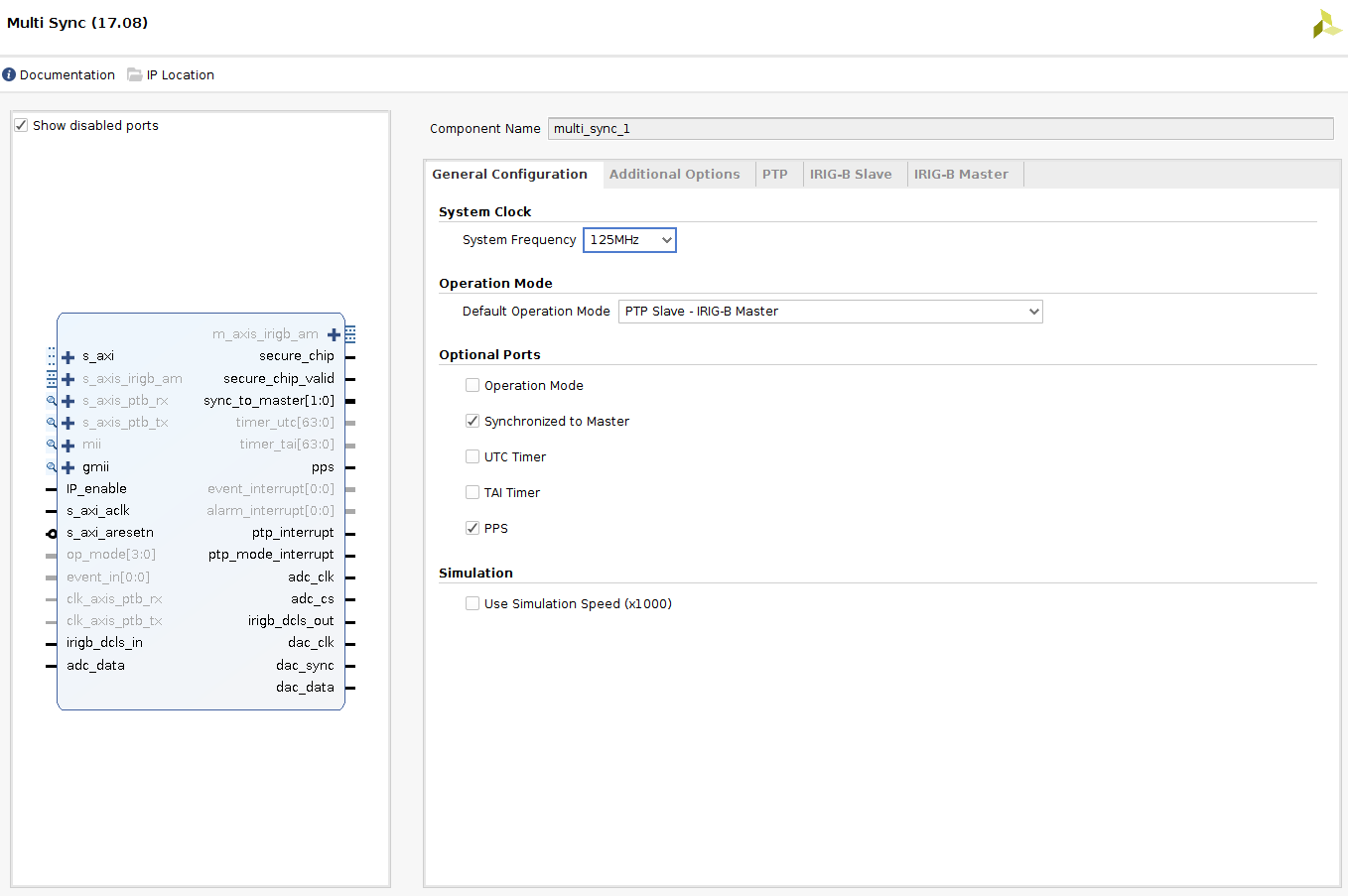 SOC-E SocTek 시리즈 MULTIsync는 새로운 Xilinx Vivado 도구를 활용하여 FPGA 설계에 쉽게 통합할 수 있도록 설계되었으며, 이 도구는 그래픽 사용자 인터페이스에서 IP 코어를 사용하고 IP 파라미터를 간단하게 구성할 수 있습니다.